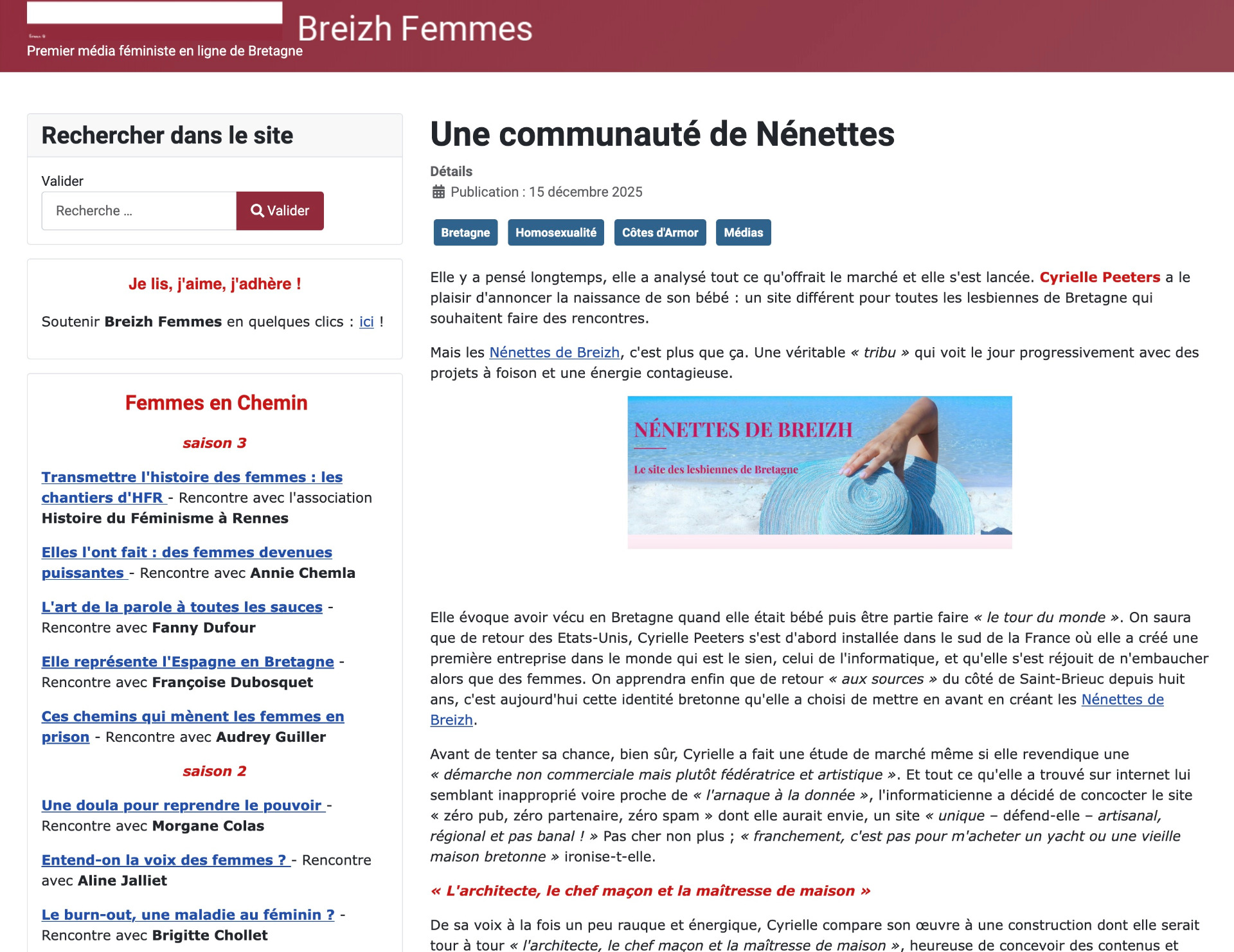 Bienvenue sur ce site chaleureux et rafraîchissant, sans pub, sans algorithmes..., uniquement destiné aux lesbiennes de braise (!) de Bretagne qui souhaitent